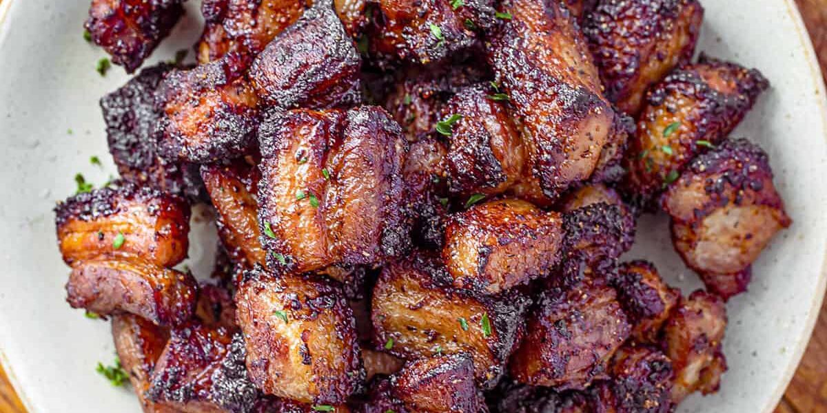 Crispy and juicy pork belly bites cooked in the air fryer and coated in a sticky honey soy glaze. Perfect as an appetizer, snack, or main dish.